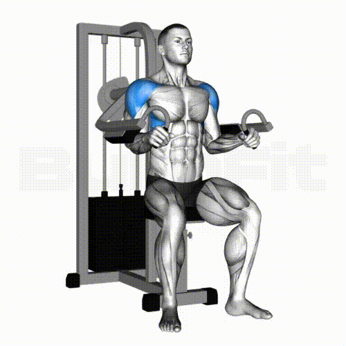 - 가슴을 열고 상체를 곧게 편 상태에서 측면 삼각근의 힘으로 기구를 밀어올립니다.