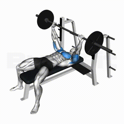 - 벤치에 가슴을 펴고 누운 상태에서, 바벨을 어깨너비보다 조금 넓게 잡고 위로 들어올립니다.