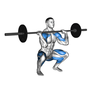 - 골반너비로 다리를 벌리고, 상체를 숙여 손바닥이 위로 향하게끔 바벨을 잡습니다.