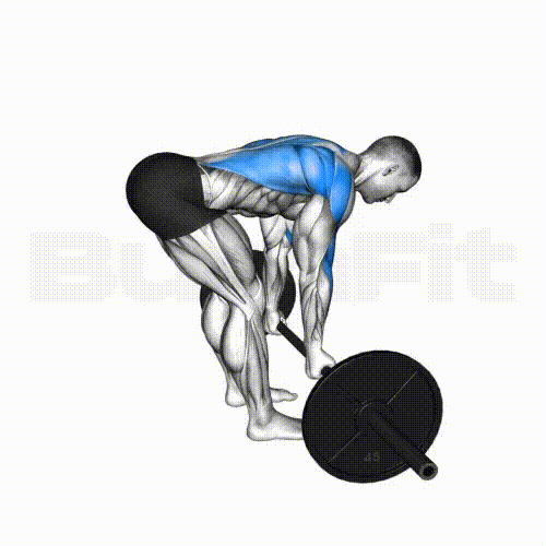 - 팔꿈치를 몸쪽으로 붙인다는 생각으로 팔을 굽혀 바벨을 복부까지 끌어당겨 줍니다.