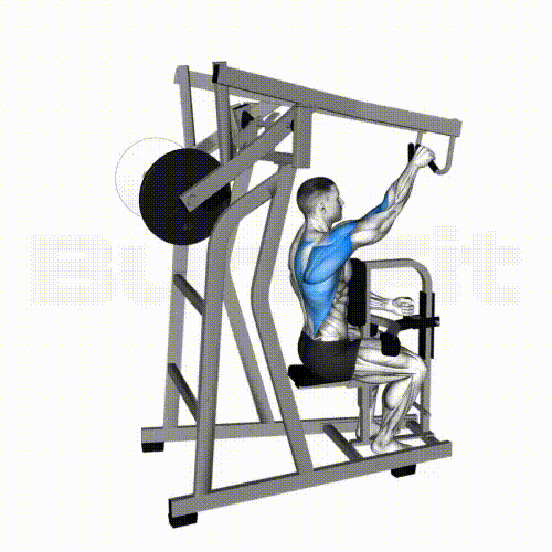 1. 기구에 앉아 상체를 고정한 상태에서, 손잡이를 한손으로 잡습니다.