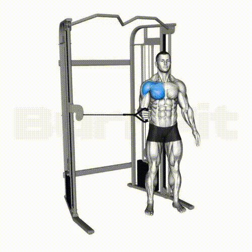 - 팔꿈치를 허리에 단단히 고정시킨 상태에서 케이블을 배꼽방향으로 반원을 그리며 당겨줍니다. 이때, 전완부는 바닥과 평행을 유지할 수 있도록 합니다.