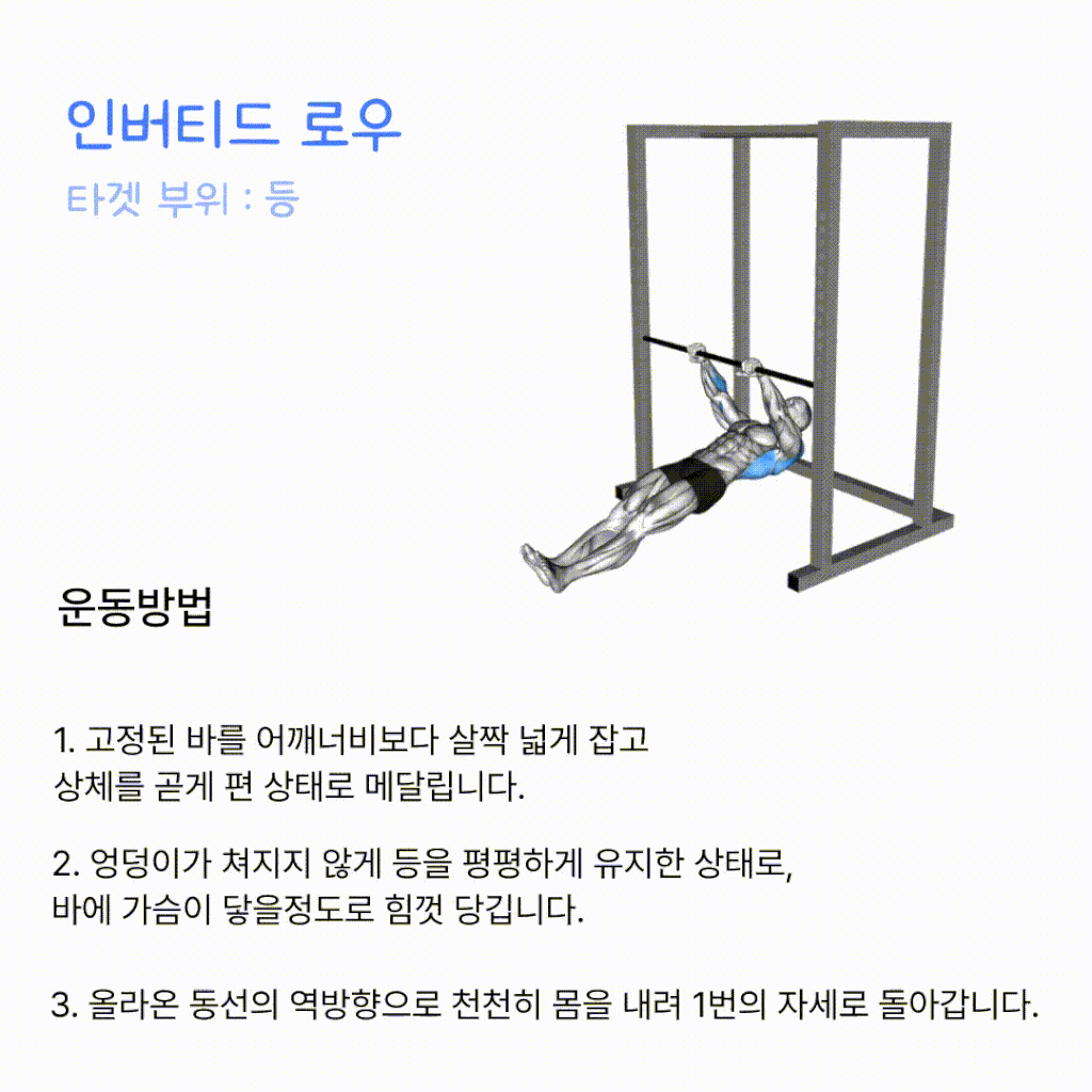 | 인버티드 로우 | 5세트 | 8~10회 |