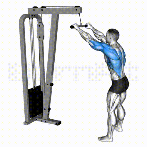 - Hold the bar connected to the cable with your arms slightly wider than your shoulder-width apart. If you hold the grip with thumb raised position at this step, you can workout more on your lats.