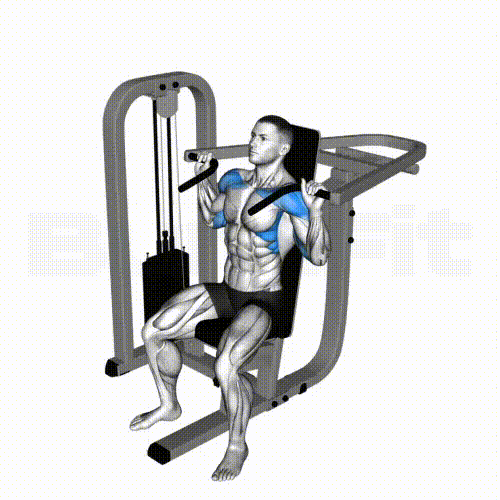 1. Sit at the machine and hold the handles with an elbow angle of 90 degrees.