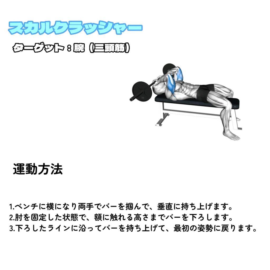4. スカルクラッシャー – 5セット8回、最後のセットは20回
