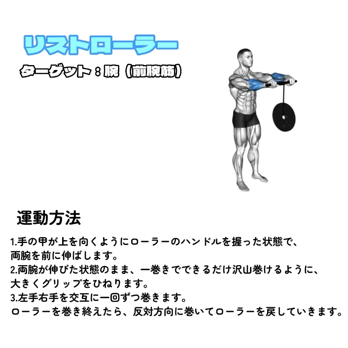 | リストローラー | 5セット | 8回 +最後のセットは20回 |