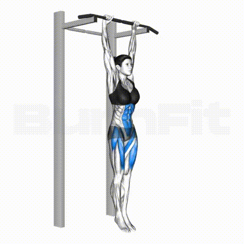 - プルアップバーやアイアンバーにぶら下がりながら、上下のボディをまっすぐにします。