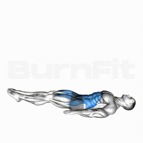 1. 床にまっすぐに横になり、腕を床に当てて体重を支えます。