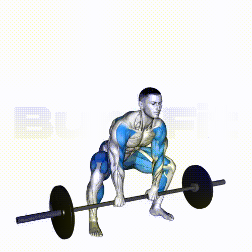 - 足の指が外側を向いている間、脚を大きく開いてバーベルの前に立ちます。