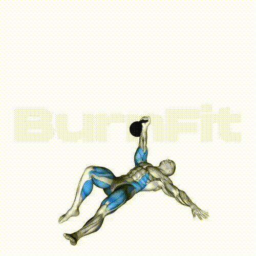 - 逆の手と足でゆっくりと体を上げながら、ケトルベルを押し上げます。
