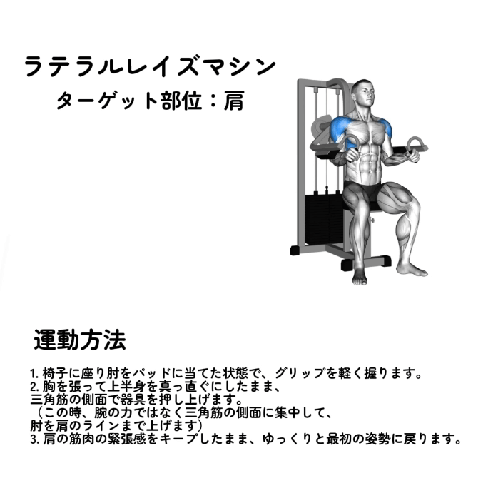 | ラテラルレイズマシン | 2セット | 10回 |