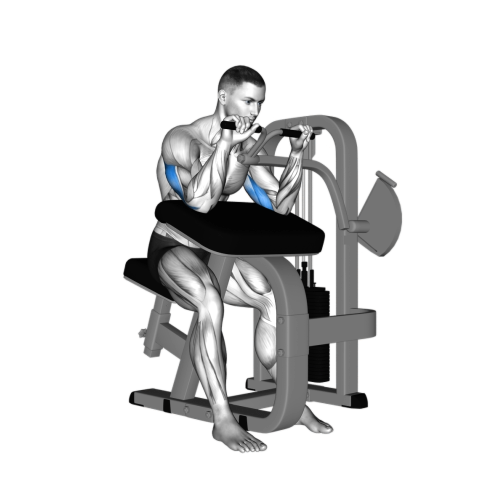 - 坐在機器前,以90度的肘部角度握住把手。